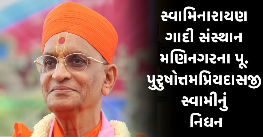 સ્વામિનારાયણ ગાદી સંસ્થાન મણિનગરના પૂ. પુરુષોત્તમપ્રિયદાસજી સ્વામીનું નિધન