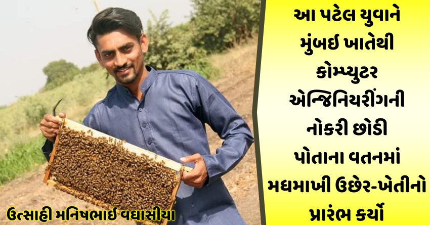 આ પટેલ યુવાને મુંબઇ ખાતેથી કોમ્પ્યુટર એન્જિનિયરીંગની નોકરી છોડી પોતાના વતનમાં મધમાખી ઉછેર-ખેતીનો પ્રારંભ કર્યો