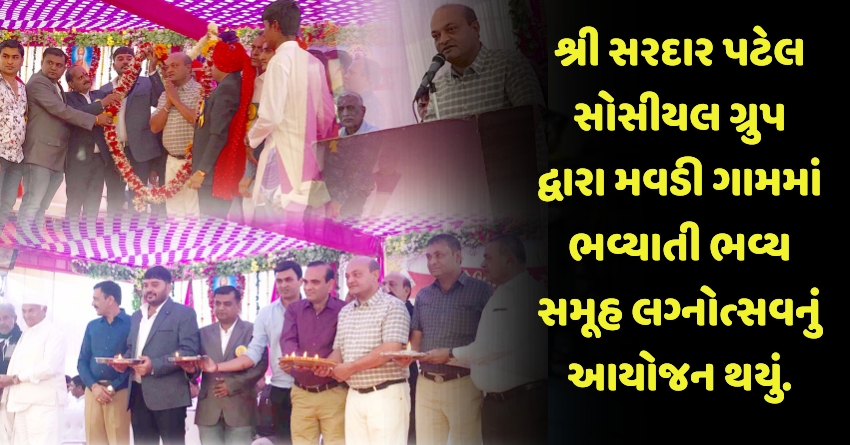 શ્રી સરદાર પટેલ સોસીયલ ગ્રુપ દ્વારા મવડી ગામમાં ભવ્યાતી ભવ્ય સમૂહ લગ્નોત્સવનું આયોજન થયું.