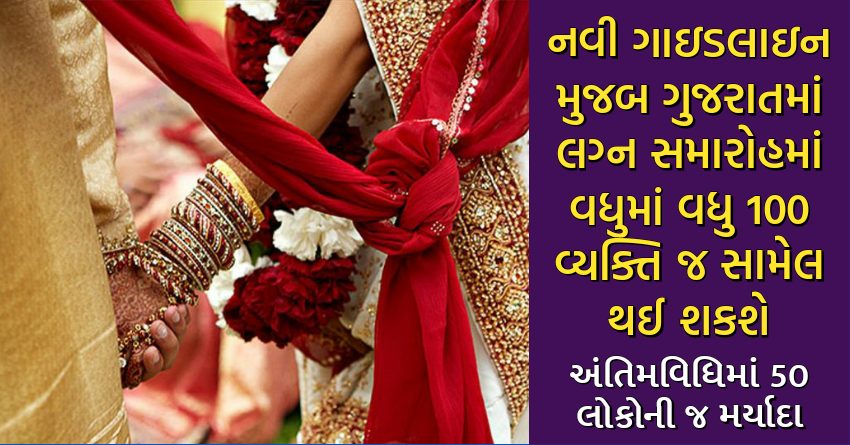 નવી ગાઇડલાઇન મુજબ ગુજરાતમાં લગ્ન સમારોહમાં વધુમાં વધુ 100 વ્યક્તિ જ સામેલ થઈ શકશે, અંતિમવિધિમાં 50 લોકોની જ મર્યાદા