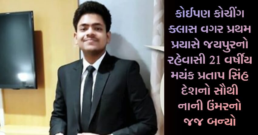 કોઈપણ કોચીંગ ક્લાસ વગર પ્રથમ પ્રયાસે જયપુરનો રહેવાસી 21 વર્ષીય મયંક પ્રતાપ સિંહ દેશનો સૌથી નાની ઉંમરનો જજ બન્યો