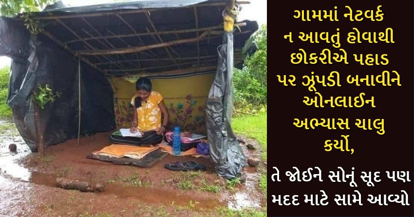 ગામમાં નેટવર્ક ન આવતું હોવાથી છોકરીએ પહાડ પર ઝૂંપડી બનાવીને ઓનલાઈન અભ્યાસ ચાલુ કર્યો, તે જોઈને સોનૂં સૂદ પણ મદદ માટે સામે આવ્યો
