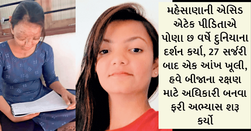 મહેસાણાની એસિડ એટેક પીડિતાએ પોણા છ વર્ષે દુનિયાના દર્શન કર્યા 27 સર્જરી બાદ એક આંખ ખૂલી, હવે બીજાના રક્ષણ માટે અધિકારી બનવા ફરી અભ્યાસ શરૂ કર્યો