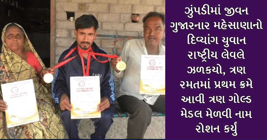ઝુંપડીમાં જીવન ગુજારનાર મહેસાણાનો દિવ્યાંગ યુવાન રાષ્ટ્રીય લેવલે ઝળકયો, ત્રણ રમતમાં પ્રથમ ક્રમે આવી ત્રણ ગોલ્ડ મેડલ મેળવી નામ રોશન કર્યું