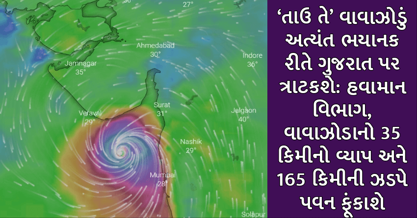 ‘તાઉ તે’ વાવાઝોડું અત્યંત ભયાનક રીતે ગુજરાત પર ત્રાટકશે: હવામાન વિભાગ, વાવાઝોડાનો 35 કિમીનો વ્યાપ અને 165 કિમીની ઝડપે પવન ફૂંકાશે