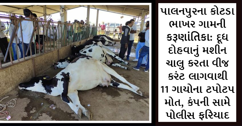 પાલનપુરના કોટડા ભાખર ગામની કરૂણાંતિકા: દૂધ દોહવાનું મશીન ચાલુ કરતા વીજ કરંટ લાગવાથી 11 ગાયોના ટપોટપ મોત, કંપની સામે પોલીસ ફરિયાદ