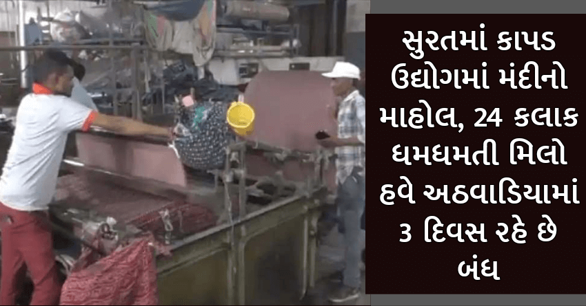 સુરતમાં કાપડ ઉદ્યોગમાં મંદીનો માહોલ, 24 કલાક ધમધમતી મિલો હવે અઠવાડિયામાં 3 દિવસ રહે છે બંધ