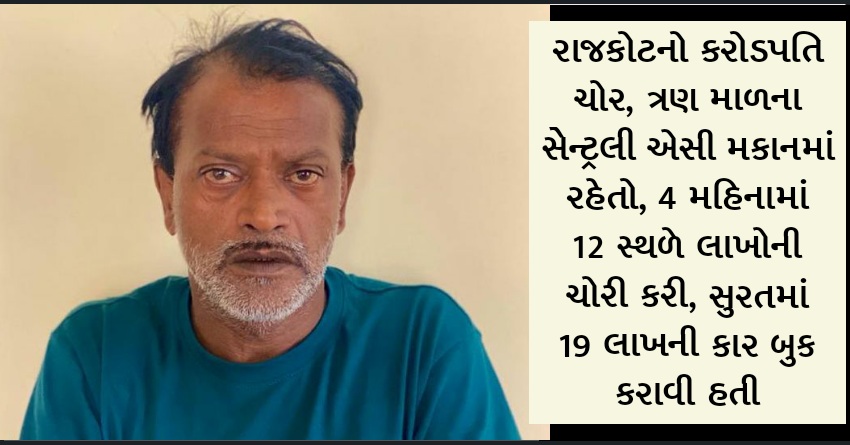 રાજકોટનો કરોડપતિ ચોર, ત્રણ માળના સેન્ટ્રલી એસી મકાનમાં રહેતો, 4 મહિનામાં 12 સ્થળે લાખોની ચોરી કરી, સુરતમાં 19 લાખની કાર બુક કરાવી હતી