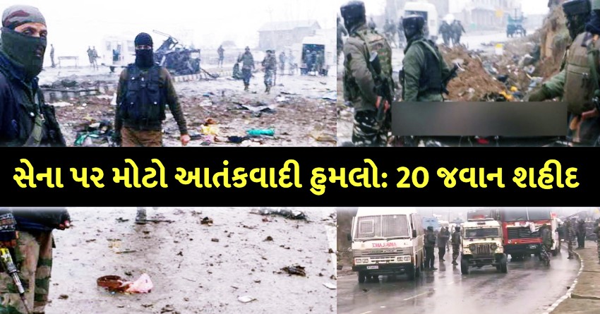 જમ્મુ-કાશ્મીરમાં આતંકીઓએ ફરી એક વાર સેનાને ટાર્ગેટ કરી છે. પુલવામામાં અવંતીપોરાના ગોરીપોરામાં સેનાના કાફલા પર જૈશ-એ-મોહમ્મદ આતંકી સંગઠને હુમલો કર્યો છે. આ દરમિયાન સેના પર IED બ્લાસ્ટ કરવામાં આવ્યો હતો. આ બ્લાસ્ટમાં 18 જવાન શહીદ થયા છે જ્યારે 12થી વધારે સીઆરપીએફના જવાન ગંભીર રીતે ઘાયલ થયા છે. ખીણમાં ઘણાં લાંબા સમય પછી આતંકીઓએ આઈઈડી બ્લાસ્ટ દ્વારા સેના પર મોટો આતંકી હુમલો કર્યો છે.