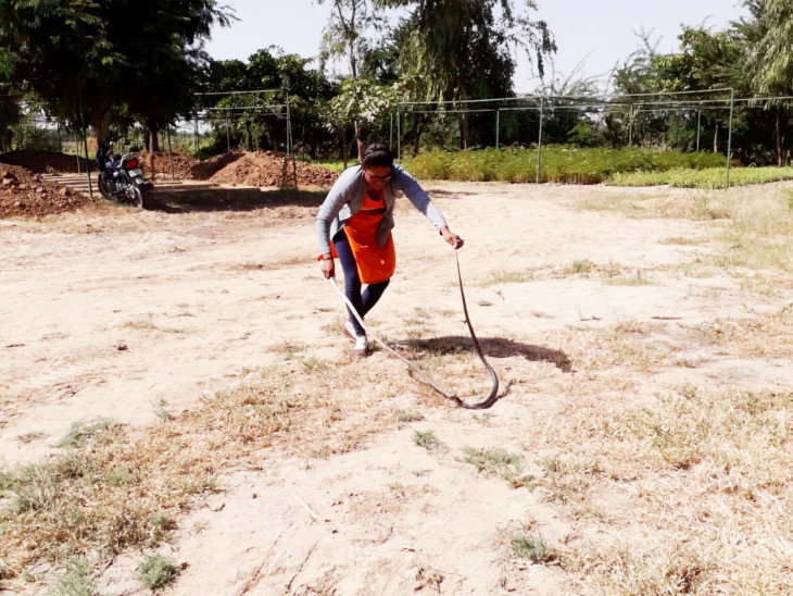 મહેસાણા તાલુકાના પીલોદરા ગામનાં વતની મિનાક્ષીબેન રવિકુમાર પટેલ હારિજ નર્સરી ખાતે છેલ્લાં ચાર વર્ષ ઉપરાંતથી વનરક્ષક તરીકે ફરજ બજાવે છે. તેઓને જીવતા સર્પ પકડવાનો અનોખો શોખ છે. શુક્રવારે હારિજ નર્સરીમાં કાળો કોબ્રા નીકળ્યો હતો. તેમને સામાન્ય લાકડીના સહારે કોબ્રા સર્પનું મોઢું દબાવી પકડી પાડી ને થોડે દુર બાવળની ઝાડીમાં છોડાયો હતો…