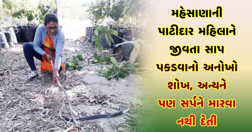 મહેસાણાની પાટીદાર મહિલાને જીવતા સાપ પકડવાનો અનોખો શોખ, અન્યને પણ સર્પને મારવા નથી દેતી