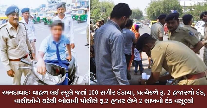 અમદાવાદ: વાહન લઈ સ્કૂલે જતાં 100 સગીર દંડાયા, પ્રત્યેકને રૂ. 2 હજારનો દંડ, વાલીઓને ઘરેથી બોલાવી પોલીસે રૂ.2 હજાર લેખે 2 લાખનો દંડ વસૂલ્યો