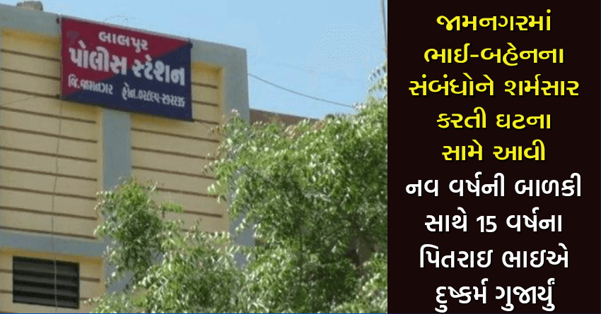 જામનગરમાં ભાઈ-બહેનના સંબંધોને શર્મસાર કરતી ઘટના સામે આવી: નવ વર્ષની બાળકી સાથે 15 વર્ષના પિતરાઇ ભાઇએ દુષ્કર્મ ગુજાર્યું
