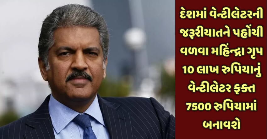 દેશમાં વેન્ટીલેટરની જરૂરીયાત પુરી પાડવા મહિંન્દ્રા ગૃપ 10 લાખ રુપિયાનું વેન્ટીલેટર ફક્ત 7500 રુપિયામાં બનાવશે
