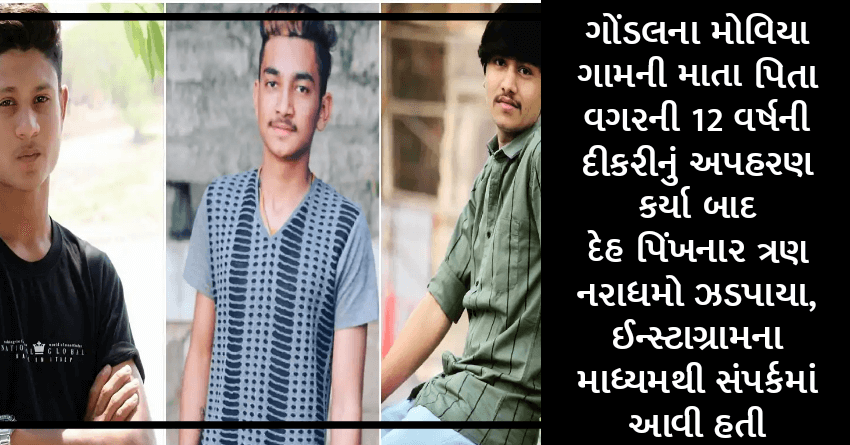 ગોંડલના મોવિયા ગામની માતા પિતા વગરની 12 વર્ષની દીકરીનું અપહરણ કર્યા બાદ દેહ પિંખનાર ત્રણ નરાધમો ઝડપાયા, ઈન્સ્ટાગ્રામના માધ્યમથી સંપર્કમાં આવી હતી