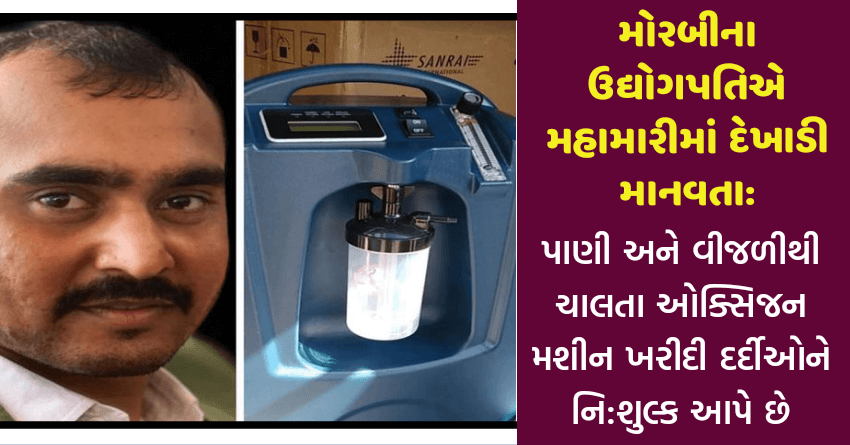 મોરબીના ઉદ્યોગપતિએ મહામારીમાં દેખાડી માનવતા: પાણી અને વીજળીથી ચાલતા ઓક્સિજન મશીન ખરીદી દર્દીઓને નિ:શુલ્ક આપે છે