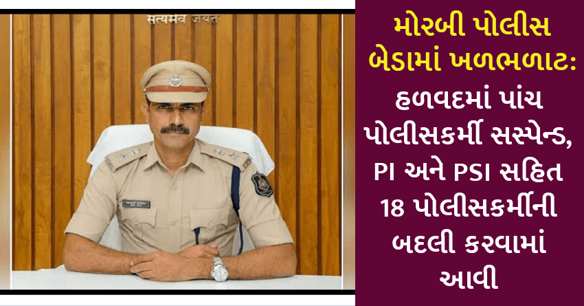 મોરબી પોલીસ બેડામાં ખળભળાટ: હળવદમાં પાંચ પોલીસકર્મી સસ્પેન્ડ, PI અને PSI સહિત 18 પોલીસકર્મીની બદલી કરવામાં આવી