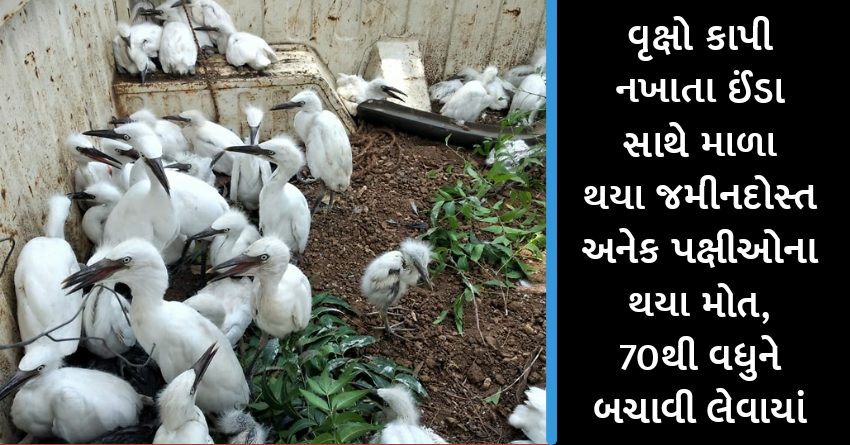 વૃક્ષો કાપી નખાતા ઈંડા સાથે માળા થયા જમીનદોસ્ત અનેક પક્ષીઓના થયા મોત, 70થી વધુને બચાવી લેવાયાં