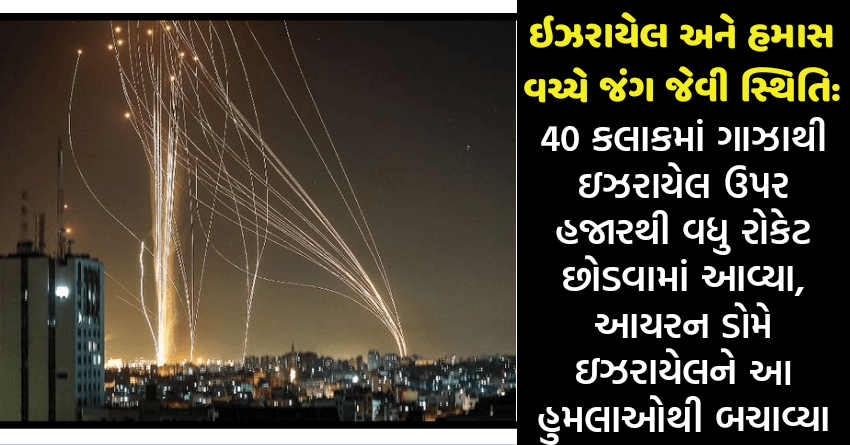 ઇઝરાયેલ અને હમાસ વચ્ચે જંગ જેવી સ્થિતિ: 40 કલાકમાં ગાઝાથી ઇઝરાયેલ ઉપર હજારથી વધુ રોકેટ છોડવામાં આવ્યા, આયરન ડોમે ઇઝરાયેલને આ હુમલાઓથી બચાવ્યા