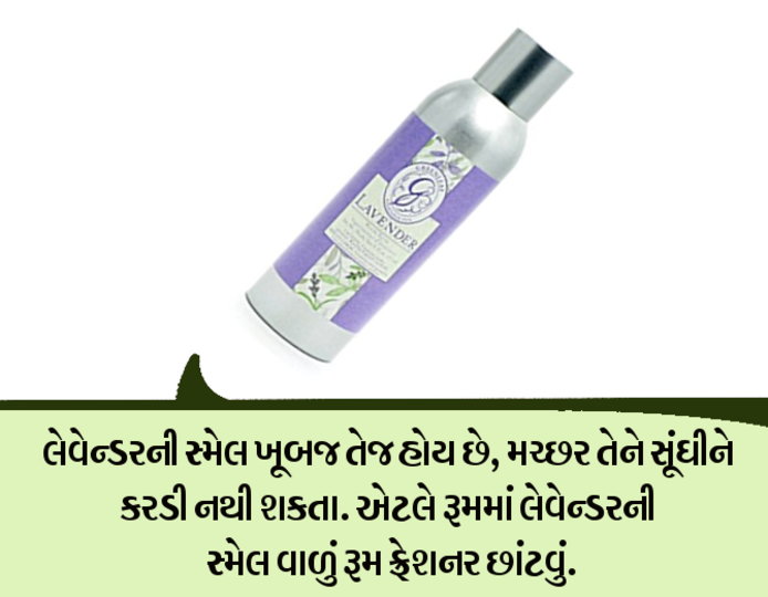 લવેન્ડરની સુગંધ પણ ખૂબ તેજ હોય છે. રૂમમા લવેન્ડરનુ રૂમ ફ્રેશનર છાંટવાથી પણ મચ્છર દૂર રહે છે.
