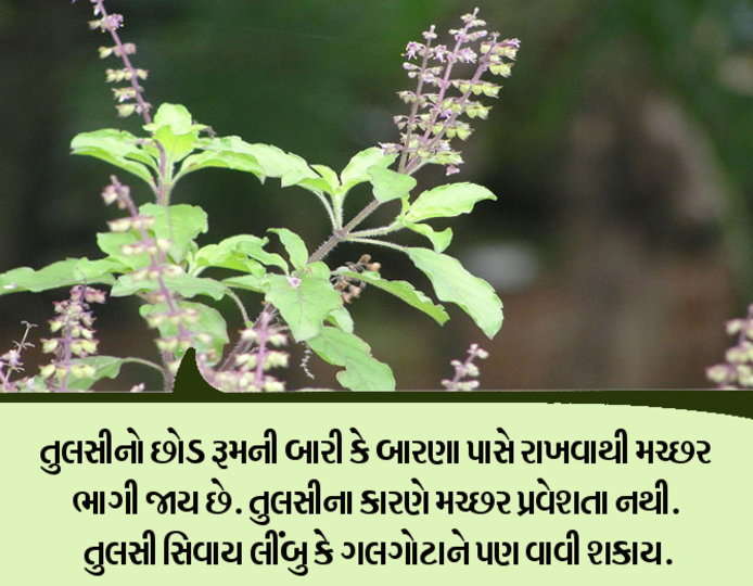 તુલસીના છોડને રૂમના દરવાજા પાસે રાખવાથી પણ મચ્છર ત્યાંથી દુર રહે છે. તુલસી મચ્છરોને ઘરમા પ્રવેશ કરવાથી રોકે છે. કારણકે તુલસીની સુગંધ ખૂબ જ સ્ટ્રોંગ હોય છે. તે સિવાય લીંબુના છોડનો પણ ઉપયોગ કરી શકો છો.