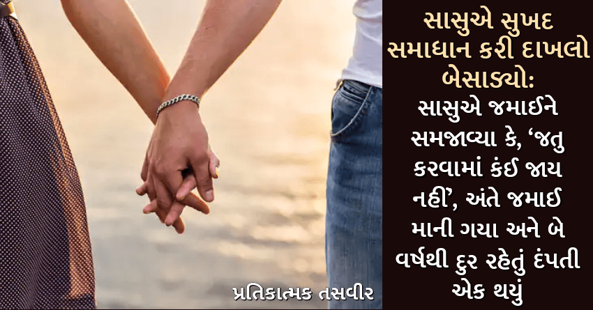 સાસુએ સુખદ સમાધાન કરી દાખલો બેસાડ્યો: સાસુએ જમાઈને સમજાવ્યા કે, ‘જતુ કરવામાં કંઈ જાય નહીં’, અંતે જમાઈ માની ગયા અને બે વર્ષથી દુર રહેતું દંપતી એક થયું