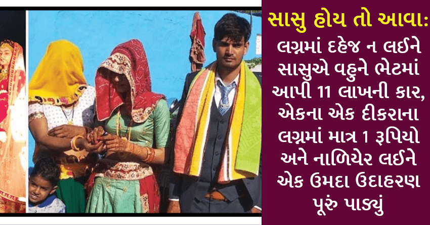 સાસુ હોય તો આવા: લગ્નમાં દહેજ ન લઈને સાસુએ વહુને ભેટમાં આપી 11 લાખની કાર, એકના એક દીકરાના લગ્નમાં માત્ર 1 રૂપિયો અને નાળિયેર લઈને એક ઉમદા ઉદાહરણ પૂરું પાડ્યું