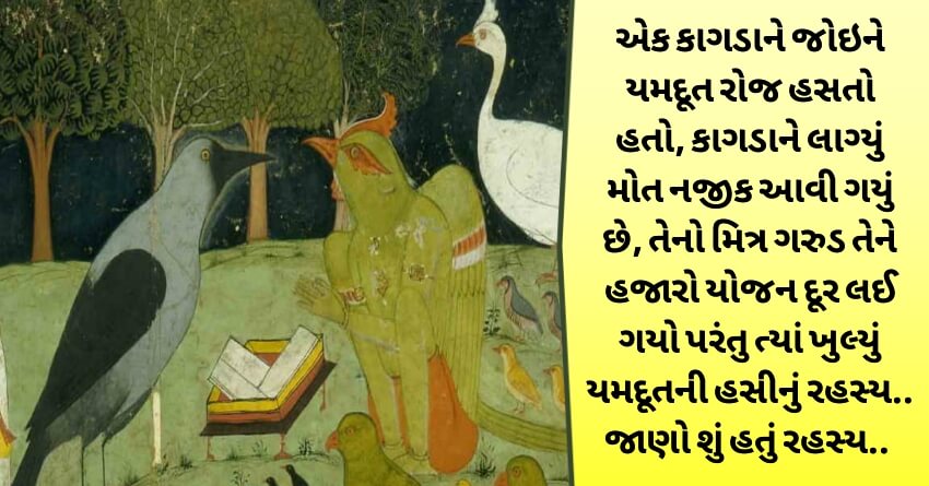 એક કાગડાને જોઇને યમદૂત રોજ હસતો હતો, કાગડાને લાગ્યું મોત નજીક આવી ગયું છે, તેનો મિત્ર ગરુડ તેને હજારો યોજન દૂર લઈ ગયો પરંતુ ત્યાં ખુલ્યું યમદૂતની હસીનું રહસ્ય