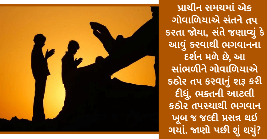 પ્રાચીન સમયમાં એક ગોવાળિયાએ સંતને તપ કરતા જોયા, સંતે જણાવ્યું કે આવું કરવાથી ભગવાનના દર્શન મળે છે, આ સાંભળીને ગોવાળિયાએ કઠોર તપ કરવાનું શરૂ કરી દીધું, ભક્તની આટલી કઠોર તપસ્યાથી ભગવાન ખૂબ જ જલ્દી પ્રસન્ન થઇ ગયાં. જાણો પછી શું થયું?