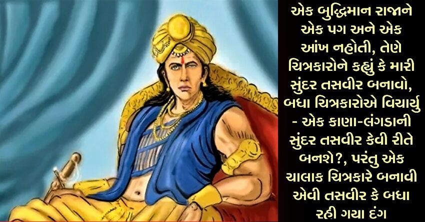 એક બુદ્ધિમાન રાજાને એક પગ અને એક આંખ નહોતી, તેણે ચિત્રકારોને કહ્યું કે મારી સુંદર તસવીર બનાવો, બધા ચિત્રકારોએ વિચાર્યુ – એક કાણા-લંગડાની સુંદર તસવીર કેવી રીતે બનશે?, પરંતુ એક ચાલાક ચિત્રકારે બનાવી એવી તસવીર કે બધા રહી ગયા દંગ