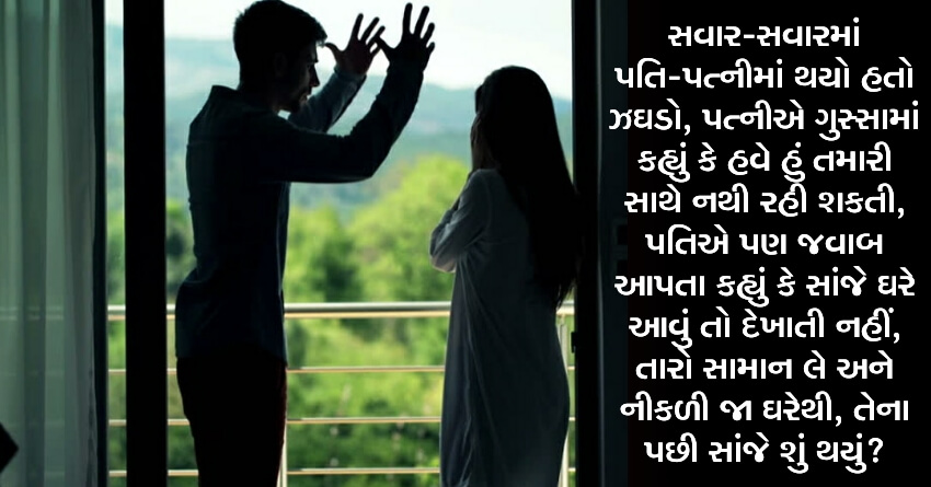 સવાર-સવારમાં પતિ-પત્નીમાં થયો હતો ઝઘડો, પત્નીએ ગુસ્સામાં કહ્યું કે હવે હું તમારી સાથે નથી રહી શકતી, પતિએ પણ જવાબ આપતા કહ્યું કે સાંજે ઘરે આવું તો દેખાતી નહીં, તારો સામાન લે અને નીકળી જા ઘરેથી, તેના પછી સાંજે શું થયું?