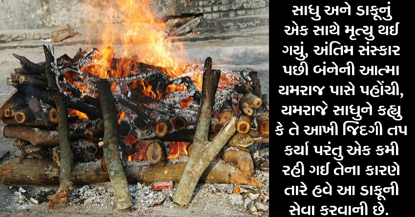 સાધુ અને ડાકૂનું એક સાથે મૃત્યુ થઈ ગયું, અંતિમ સંસ્કાર પછી બંનેની આત્મા યમરાજ પાસે પહોંચી, યમરાજે સાધુને કહ્યુ કે તે આખી જિંદગી તપ કર્યા પરંતુ એક કમી રહી ગઈ તેના કારણે તારે હવે આ ડાકૂની સેવા કરવાની છે. જાણો કઈ કમી રહી ગઈ.