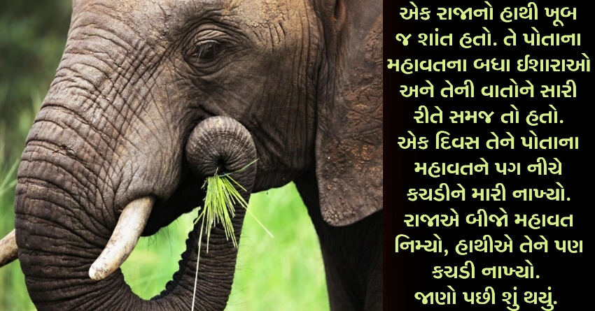 એક રાજાનો હાથી ખૂબ જ શાંત હતો. તે પોતાના મહાવતના બધા ઈશારાઓ અને તેની વાતોને સારી રીતે સમજ તો હતો. એક દિવસ તેને પોતાના મહાવતને પગ નીચે કચડીને મારી નાખ્યો. રાજાએ બીજો મહાવત નિમ્યો, હાથીએ તેને પણ કચડી નાખ્યો. જાણો પછી શું થયું.