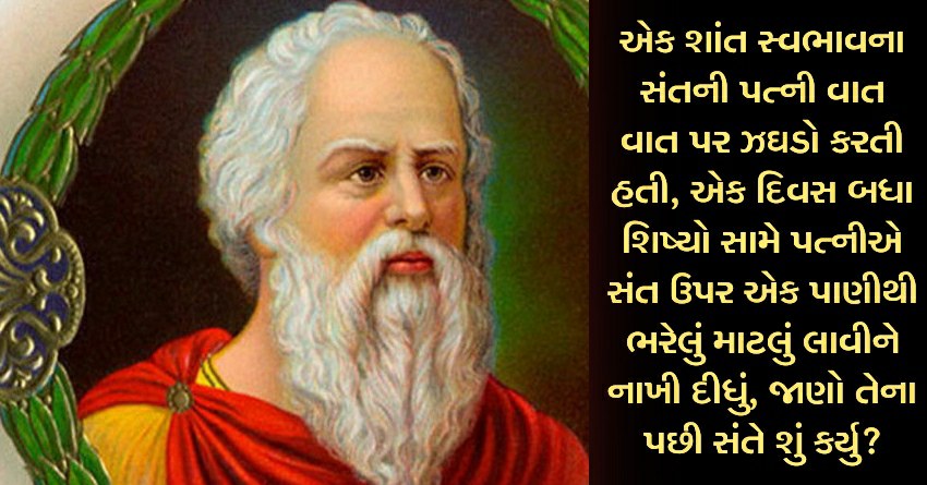 એક શાંત સ્વભાવના સંતની પત્ની વાત વાત પર ઝઘડો કરતી હતી, એક દિવસ બધા શિષ્યો સામે પત્નીએ સંત ઉપર એક પાણીથી ભરેલું માટલું લાવીને નાખી દીધું, જાણો તેના પછી સંતે શું કર્યુ?