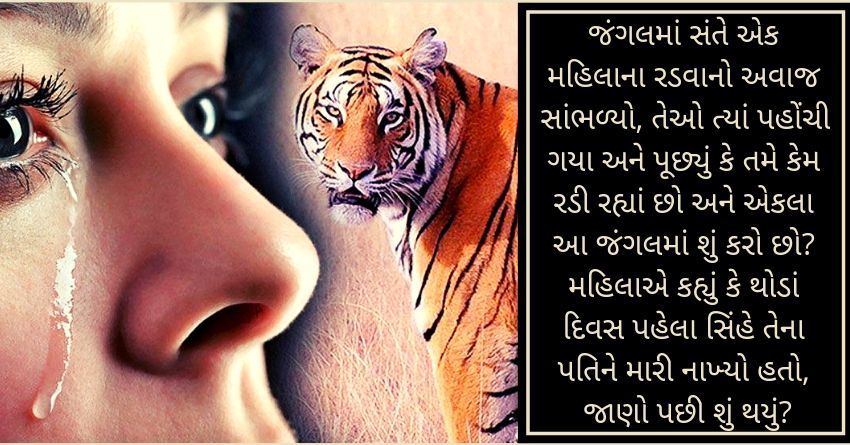 જંગલમાં સંતે એક મહિલાના રડવાનો અવાજ સાંભળ્યો, તેઓ ત્યાં પહોંચી ગયા અને પૂછ્યું કે તમે કેમ રડી રહ્યાં છો અને એકલા આ જંગલમાં શું કરો છો? મહિલાએ કહ્યું કે થોડાં દિવસ પહેલા સિંહે તેના પતિને મારી નાખ્યો હતો, જાણો પછી શું થયું?