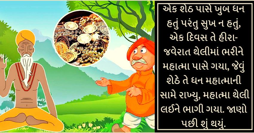 એક શેઠ પાસે ખુબ ધન હતું પરંતુ સુખ ન હતું, એક દિવસ તે હીરા-જવેરાત થેલીમાં ભરીને મહાત્મા પાસે ગયા, જેવું શેઠે તે ધન મહાત્માની સામે રાખ્યુ, મહાત્મા થેલી લઈને ભાગી ગયા, જાણો પછી શું થયું.