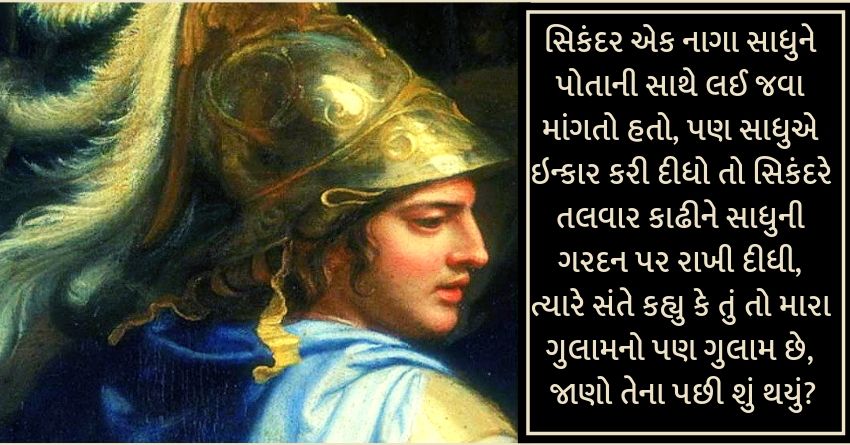 સિકંદર એક નાગા સાધુને પોતાની સાથે લઈ જવા માંગતો હતો, પણ સાધુએ ઇન્કાર કરી દીધો તો સિકંદરે તલવાર કાઢીને સાધુની ગરદન પર રાખી દીધી, ત્યારે સંતે કહ્યુ કે તું તો મારા ગુલામનો પણ ગુલામ છે, જાણો તેના પછી શું થયું?