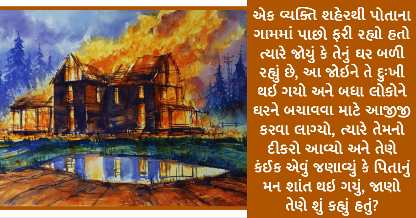 એક વ્યક્તિ શહેરથી પોતાના ગામમાં પાછો ફરી રહ્યો હતો ત્યારે જોયું કે તેનું ઘર બળી રહ્યું છે, આ જોઇને તે દુઃખી થઇ ગયો અને બધા લોકોને ઘરને બચાવવા માટે આજીજી કરવા લાગ્યો, ત્યારે તેમનો દીકરો આવ્યો અને તેણે કંઈક એવું જણાવ્યું કે પિતાનું મન શાંત થઇ ગયું, જાણો તેણે શું કહ્યું હતું?