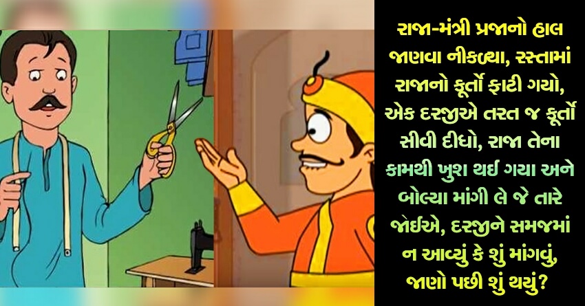 રાજા-મંત્રી પ્રજાનો હાલ જાણવા નીકળ્યા, રસ્તામાં રાજાનો કૂર્તો ફાટી ગયો, એક દરજીએ તરત જ કૂર્તો સીવી દીધો, રાજા તેના કામથી ખુશ થઈ ગયા અને બોલ્યા માંગી લે જે તારે જોઈએ, દરજીને સમજમાં ન આવ્યું કે શું માંગવું, જાણો પછી શું થયું?