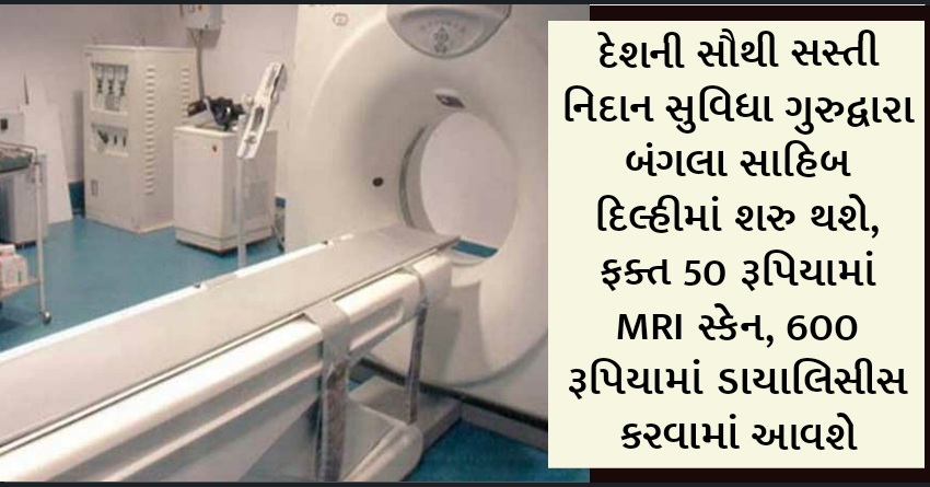 દેશની સૌથી સસ્તી નિદાન સુવિધા ગુરુદ્વારા બંગલા સાહિબ દિલ્હીમાં શરુ થઈ જશે. અહીં એક MRIની કિંમત ફક્ત 50 રૂપિયા હશે.