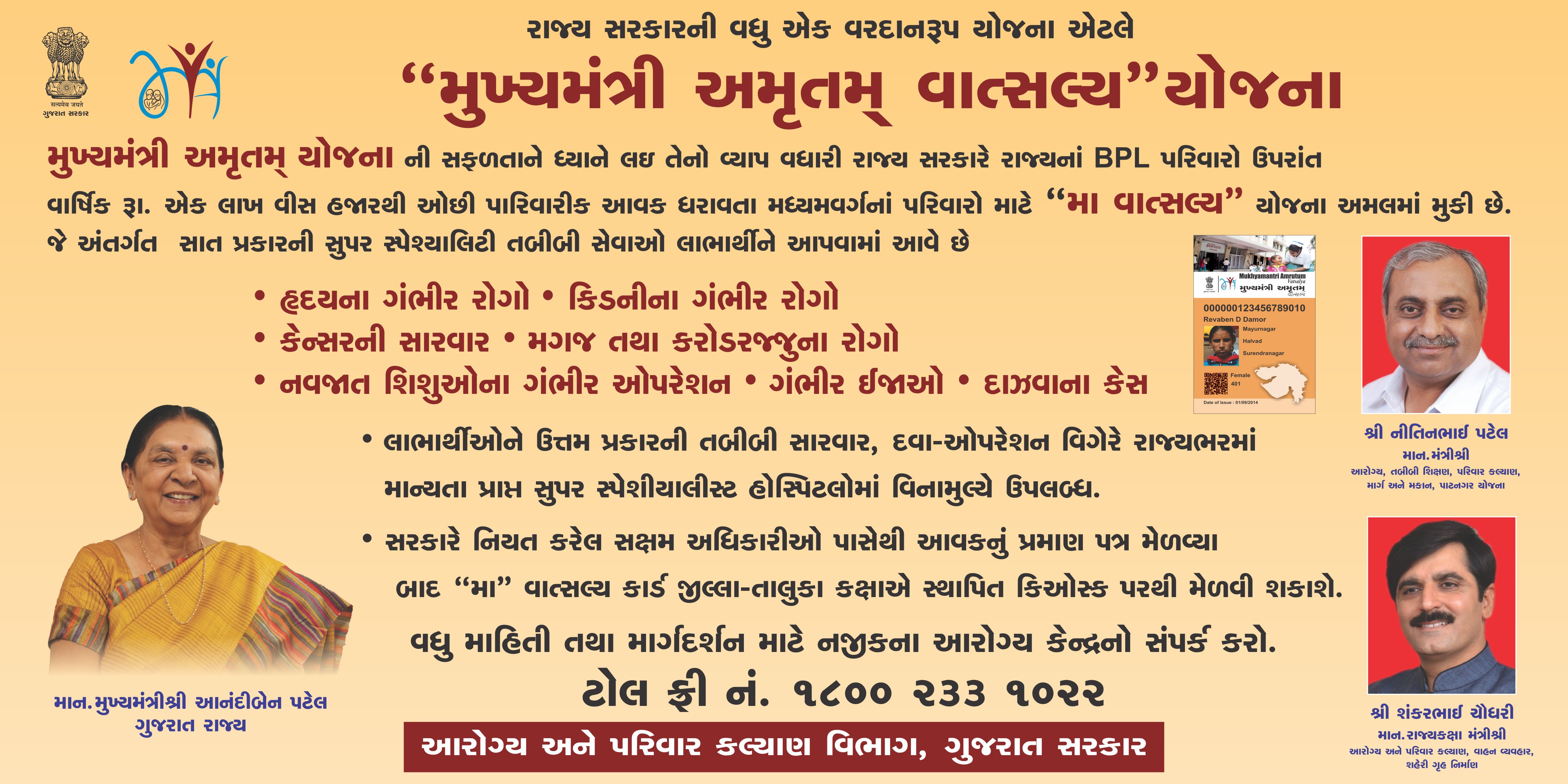 મુખ્યમંત્રી અમૃતમ “મા” અને “માં વાત્સલ્ય” યોજના.