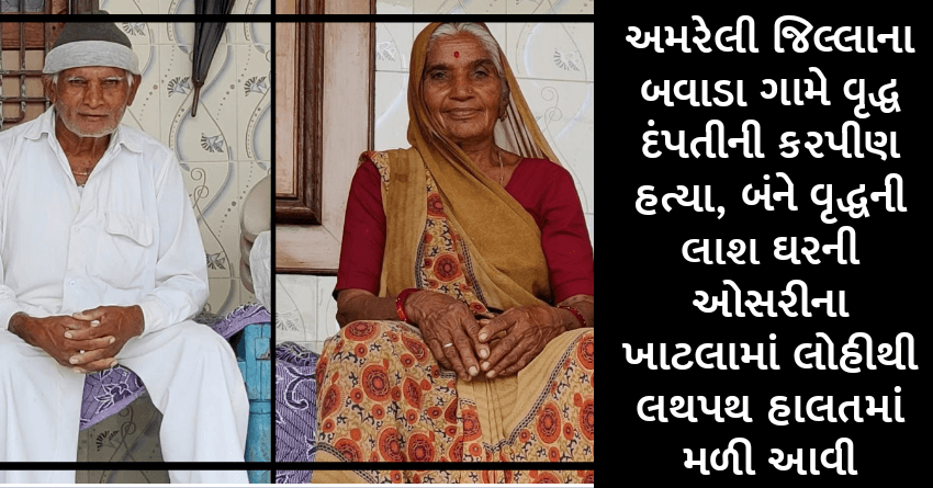 અમરેલી જિલ્લાના બવાડા ગામે વૃદ્ધ દંપતીની કરપીણ હત્યા, બંને વૃદ્ધની લાશ ઘરની ઓસરીના ખાટલામાં લોહીથી લથપથ હાલતમાં મળી આવી