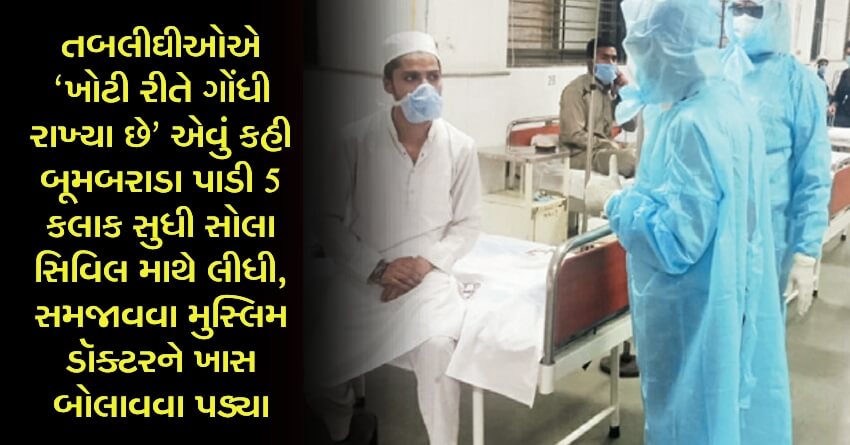 તબલીઘીઓએ ‘ખોટી રીતે ગોંધી રાખ્યા છે’ કહી બૂમબરાડા પાડી 5 કલાક સુધી સોલા સિવિલ માથે લીધી, સમજાવવા મુસ્લિમ ડૉક્ટરને ખાસ બોલાવવા પડ્યા