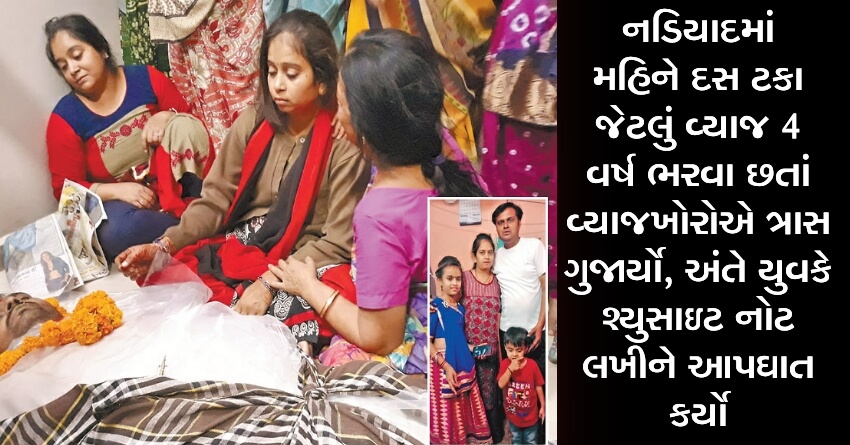 નડિયાદમાં મહિને દસ ટકા જેટલું વ્યાજ 4 વર્ષ ભરવા છતાં વ્યાજખોરોએ ત્રાસ ગુજાર્યો, અંતે યુવકે શ્યુસાઇટ નોટ લખીને આપઘાત કર્યો