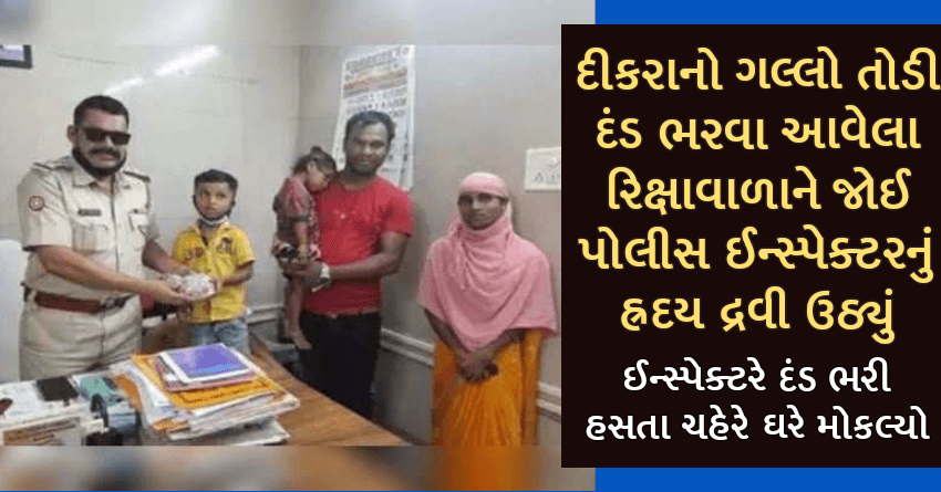 દીકરાનો ગલ્લો તોડી દંડ ભરવા આવેલા રિક્ષાવાળાને જોઈ પોલીસ ઈન્સ્પેક્ટરનું હ્રદય દ્રવી ઉઠ્યું, ઈન્સ્પેક્ટરે દંડ ભરી હસતા ચહેરે ઘરે મોકલ્યો