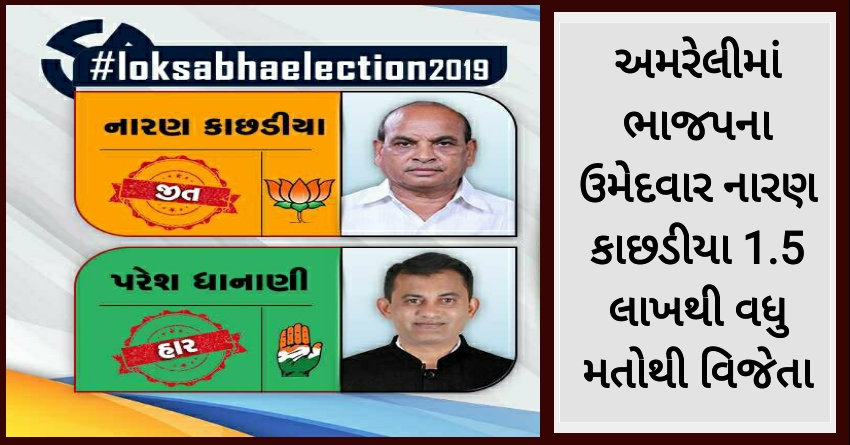 અમરેલી ભાજપના ઉમેદવાર નારણ કાછડીયાની જીત થઇ છે, જ્યારે કોંગ્રેસના ઉમેદવાર પરેશ ધાનાણીને હારનો સામનો કરવો પડ્યો છે.