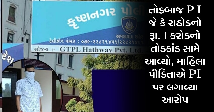તોડબાજ PI જે કે રાઠોડનો રૂા. 1 કરોડનો તોડકાંડ સામે આવ્યો, માહિલા પીડિતાએ PI પર લગાવ્યા આરોપ