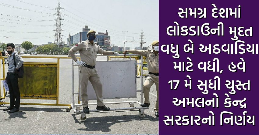 સમગ્ર દેશમાં લોકડાઉની મુદત વધુ બે અઠવાડિયા માટે વધી, હવે 17 મે સુધી ચુસ્ત અમલનો કેન્દ્ર સરકારનો નિર્ણય