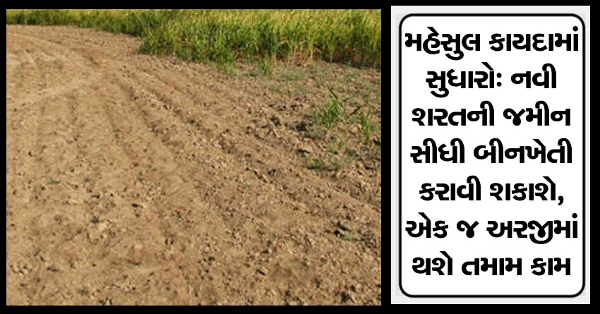 મહેસુલ કાયદામાં સુધારો: નવી શરતની જમીન સીધી બીનખેતી કરાવી શકાશે, એક જ અરજીમાં થશે તમામ કામ