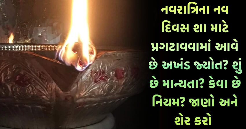 નવરાત્રિ (Navaratri 2021) પાવન પર્વ શરૂ થઈ ગયો છે. આ નવ દિવસો એટલે માં દુર્ગાની ભક્તિમાં રંગાઇ જવાના દિવસો. નવરાત્રિના દિવસો દરમિયાન માં દુર્ગાના આશીર્વાદ મેળવવા માટે અખંડ જ્યોતિ(Akhand Jyoti) પ્રજ્વલિત કરવાની એક ખાસ પ્રથા છે. નવરાત્રિ શરૂ થવાના પહેલા દિવસે કળશ સ્થાપિત કરાયા બાદ અખંડ જ્યોતિ પ્રગટાવવામાં આવે છે અને મનમાં માં દુર્ગા પ્રત્યે સમર્પણ અને ભક્તિ ભાવ દર્શાવવામાં આવે છે. તન અને મનમાં અંધકાર દૂર કરવાનું પ્રતિક છે. અખંડ જ્યોતિને નવરાત્રિ (Navaratri)માં પ્રજ્વલિત કરવાના પણ નિયમો છે. આ અખંડ જ્યોતિ સતત નવ દિવસ પ્રગટાવવામાં આવે છે. ધાર્મિક માન્યતા અનુસાર જો આ અખંડ જ્યોતિ 9 દિવસ સુધી પ્રજ્વલિત રહે છે તો પુણ્ય મળે છે અને ઘરમાં સુખ શાંતિ અને સંપન્નતા આવે છે. માંના આશીર્વાદા પરીવારને મળે છે. પરંતુ જો જ્યોત બુઝાઇ જાય છે તો અશુભ માનવામાં આવે છે.
